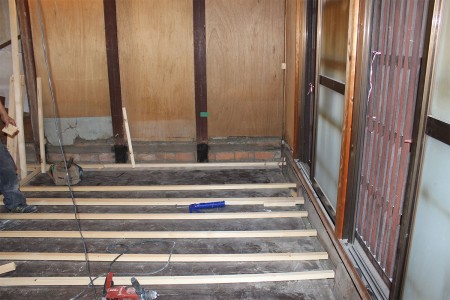 中二階は床の補強をして、ガラスの桟などは洗いに出して再利用。