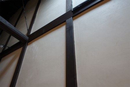 柱などを残したままで壁の基礎を養生して昔ながらの白壁に。