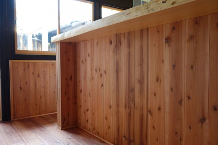 土間のところを広いスペースに仕切り、周りをカウンターで囲った大きなキッチンスペースに改良。